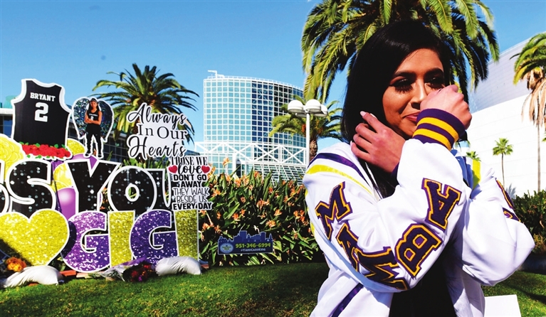 球迷在美国加州洛杉矶悼念科比及其女儿吉安娜。