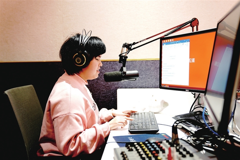 1月27日,马寅青在喜马拉雅音频平台的录音室里录制节目。