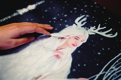 马寅青抚摸自己的艺术照。