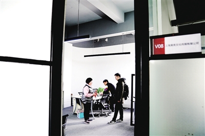 1月27日,马寅青和伙伴们在办公室交流工作。
