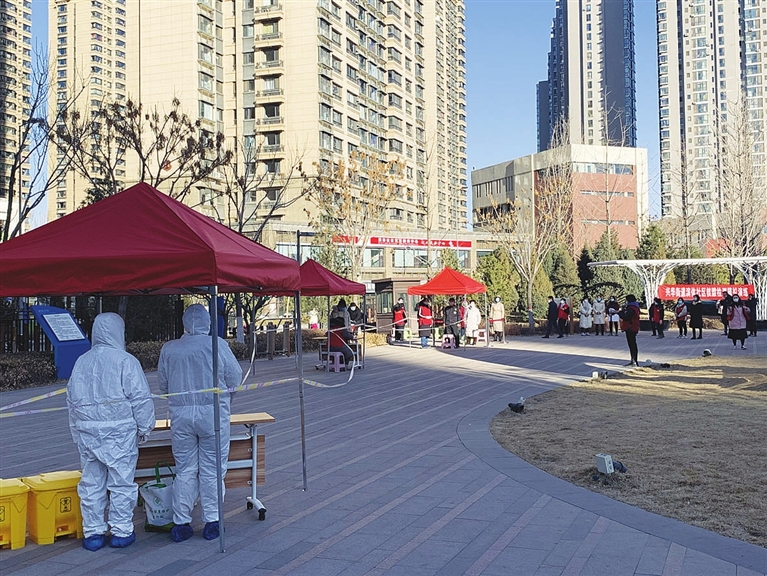 为全面提高应对新冠肺炎疫情的能力,建立快速高效的疫情管控机制,1月29日下午,滨体社区在太原市网球中心开展核酸检测模拟演练。社区工作人员、志愿者、物业人员、永乐苑社区卫生服务站工作人员及部分居民共计50余人参与了这次演练。 郭晓华 摄