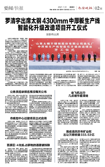 罗清宇出席太钢 4300mm中厚板生产线 智能化升级改造项目 开工仪式