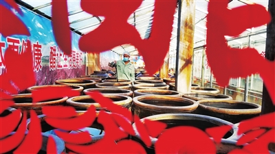 1月31日,东湖醋园内,工作人员正在福源昌陈酿房检验年份老醋。随着春节临近,东湖醋园紧抓食品安全,确保消费者享受到最地道最美味的“山西味道”。 全媒体记者 宿晓健 摄