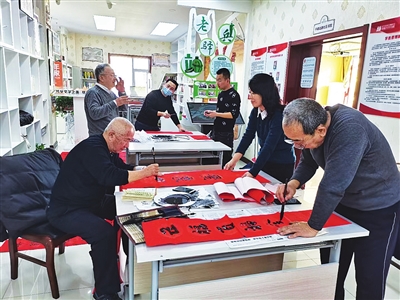 一副副红红火火的春联,就是一句句真诚的新春祝福,居民在感受传统文化熏陶的同时,也创造了和谐、友爱的社区氛围。