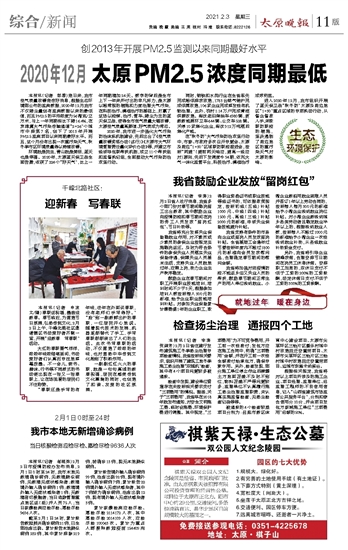 2020年12月 太原PM2.5浓度同期最低