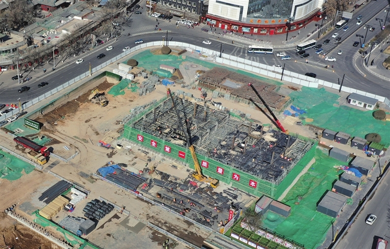 2月3日,省城五一广场改造现场一派繁忙,首义门城楼基座已现雏形。改造后的五一广场,有助于彰显城市厚重的历史,成为展示太原市作为历史文化名城的窗口。 邓寅明 摄