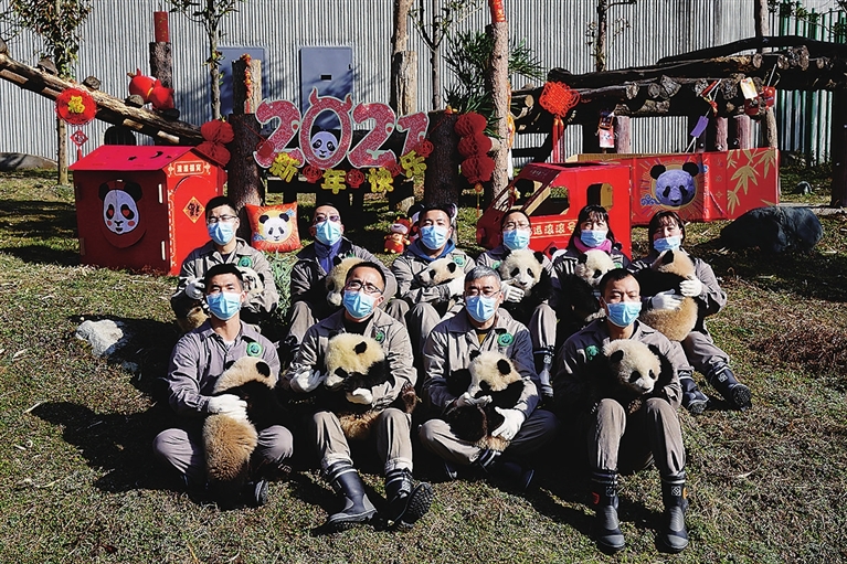 此次亮相的10只熊猫宝宝平均年龄在半岁左右,最大的是熊猫“芊芊”所生双胞胎姐妹花,出生190多天,最小的是熊猫“淑琴”所生龙凤胎,出生120多天,其中,“淑琴二仔”出生体重仅57.1克,是2020年出生体重最轻的熊猫宝宝。