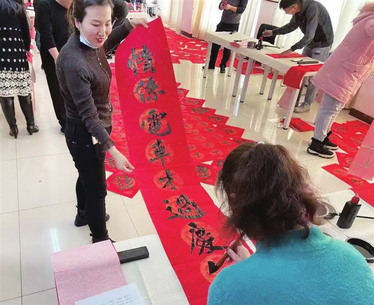 2月3日下午,公交电车分公司举办了“迎新春,送春联”活动,十几名喜欢书法的公交职工和家属挥毫泼墨,以善行公交和安全生产为主题,书写了牛年春联。