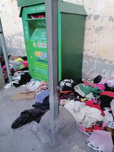 这是小东门街景泽明苑小区南侧便道旁,2月2日下午的一幕景象。春节临近,人们清理家里的废旧衣物后,又将这些衣物随意丢弃在回收箱前,一直无人处理,影响环境,带来隐患。希望广大市民提高文明意识,保持家里整洁的同时,也要顾及室外环境,共创文明洁净的节日环境。更希望回收箱管理方尽快回收,保持良好的街面环境。