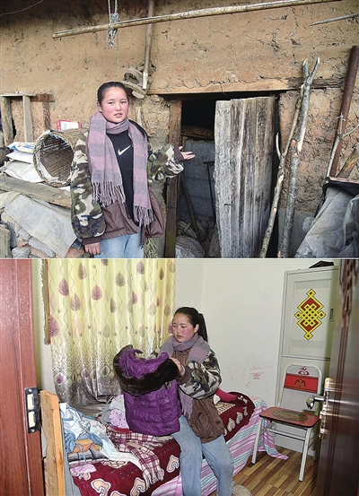 上图是大女儿巫其拉布木介绍自己曾经住过的房间(1月20日摄);下图是巫其拉布木在自己的新房间整理衣物(1月20日摄)。