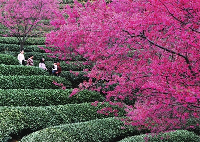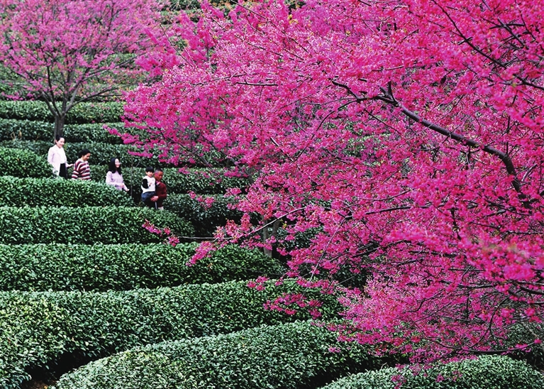 立春时节,福建省漳平市永福镇台品樱花茶园里的樱花竞相绽放,美不胜收。