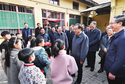 夏县庙前镇吴村是一个脱贫村。李克强走进村民家中,送上年货和祝福,围坐一起算全家收入的细账,询问家里有几亩地、几个人打工、还有什么期盼。他说,国家正在实施乡村振兴战略,会继续实行帮扶和促进政策,巩固脱贫成果,政策好、大家努力干,日子会越过越好。他勉励在外打工的村民通过勤劳奋斗为家里撑起一片天。村里孩子回答了总理关心的上学情况,一名小学生兴致勃勃给总理背诵了唐诗,李克强鼓励孩子们理解传承好中华优秀传统文化。他特别关心群众冬季取暖,听到在国家政策支持下,村里用上了生物质炉,把当地较多的修剪下来的果树枝、秸秆颗粒等做燃料,解决了做饭、取暖问题,李克强予以肯定。他强调,冬季取暖要宜煤则煤、宜气则气、因地制宜,为群众办事就是要立足实际、多动脑筋,让群众更方便。