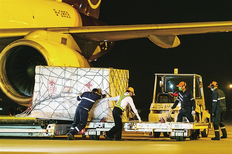 8日凌晨,中国政府援助老挝的中国国药集团生产的新冠疫苗也由中国圆通速递货运包机运抵老挝首都万象,老挝卫生部长本贡和中国驻老挝大使姜再冬到机场迎接。