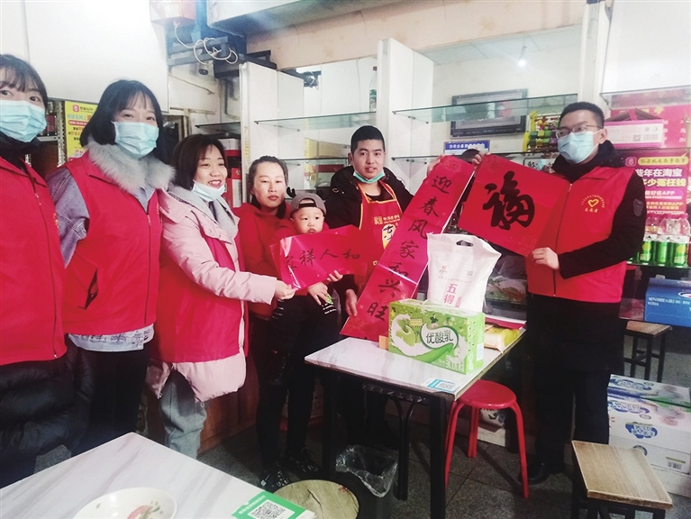 2月8日上午,柳巷街道海东社区与迎泽区行政审批管理局的工作人员组成志愿者小队,慰问辖区过年不回家的务工人员,并深入背街小巷和小区院落进行疫情摸底排查,叮嘱小区门房、商铺等人员做好疫情防控。