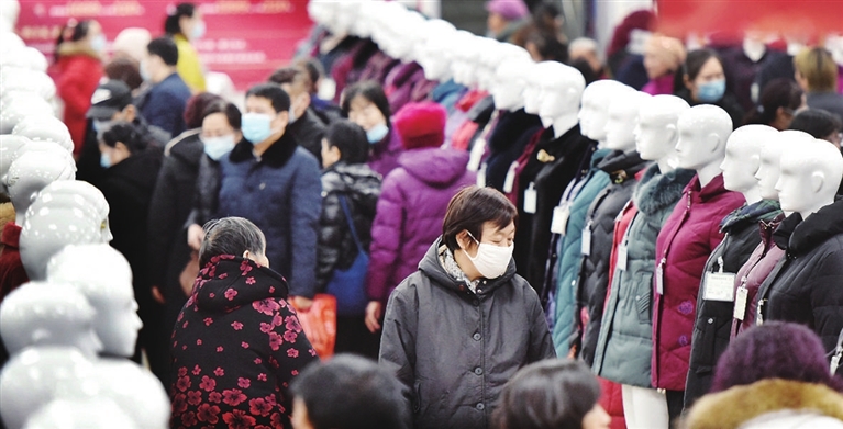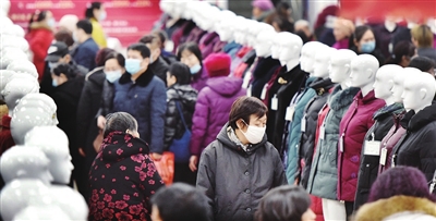 2月8日,省城一商场内人流如织。春节临近,服装市场迎来销售高峰期,不论是商场里高档品牌专卖店还是街头小店都人头攒动,生意异常火爆。 邓寅明 摄