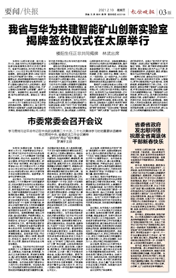 我省与华为共建智能矿山创新实验室揭牌签约仪式在太原举行