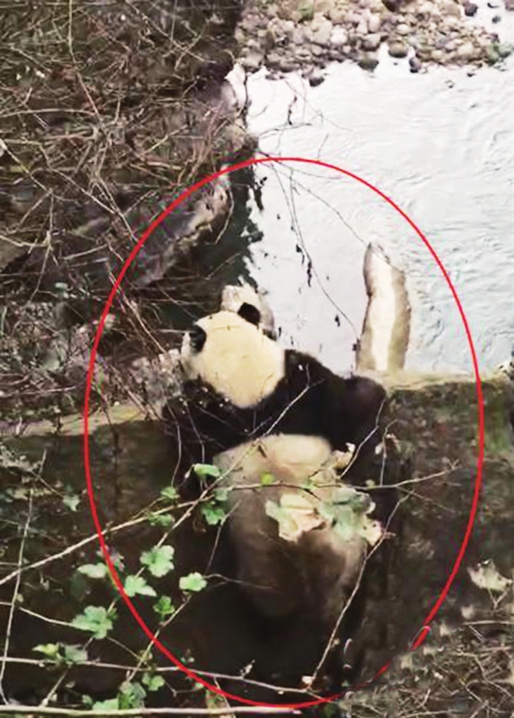 四川野生大熊猫 下山过河来“拜年”