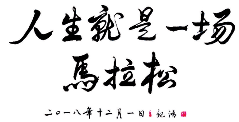 “人生就是一场马拉松”书法作品。