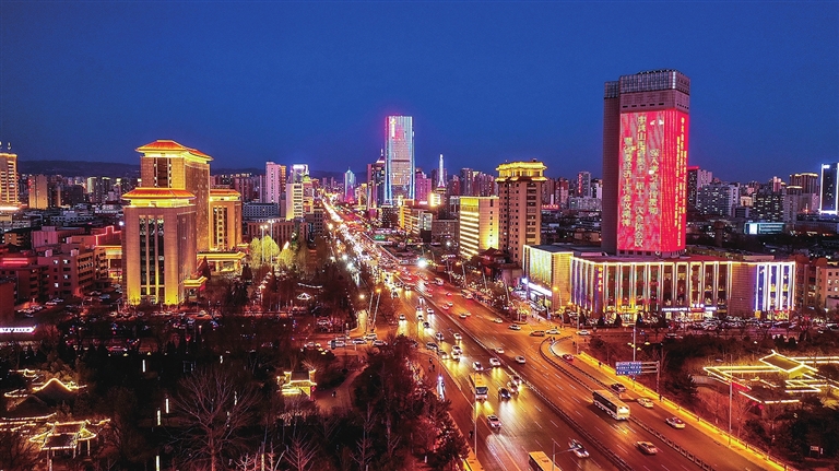 2月20日晚,夜幕降临,汾河两岸华灯初上,繁星点点与万家灯火交相辉映,流光溢彩,构成了一幅年味十足的城市夜景图。 韩双喜 摄