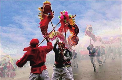 我们这些孩子们看节目也不消停,一会儿就和小伙伴们打闹戏耍起来,在人群里串来串去,少不了挤着踩着别人,引来几声嗔怪。闹红火的队伍演出完毕,锣鼓声渐渐远去,人们才说着笑着议论着,意犹未尽地慢慢散去。有的看着不过瘾,就跟着队伍走上几里地,到下个村子“复习”一遍。