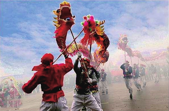 过了大年初一,初二开始走亲戚,初五在家要过“破五”,初六闹红火的队伍就开始粉墨登场了,有扭秧歌的、踩高跷的、打霸王鞭的、唱样板戏、歌舞剧的,还有社火。闹红火一直要延续到正月十五以后。