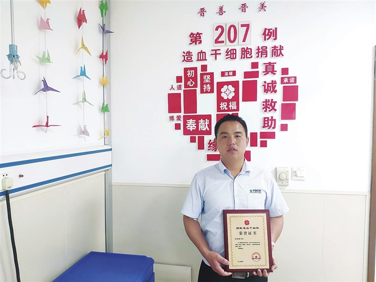 2018年7月,李绍辉在老家河南参加无偿献血时,登记加入了中国造血干细胞捐献者资料库(中华骨髓库)。去年10月,他与一名正在治疗的血液病患者初步配型相合。老家的红十字会工作人员通知他时,小李毫不犹豫表示同意捐献。由于小李目前就职于山西锦绣大象农牧股份有限公司,工作人员便根据造血干细胞捐献异地转库流程,转由中华骨髓库山西分库开展随后的捐献对接工作。