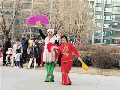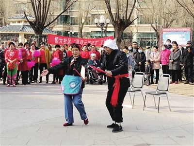 当日下午,锣鼓秧歌、歌曲舞蹈、戏曲、乐器演奏等精彩纷呈的节目一一上演。吕剧《老两口学毛选》韵味十足,勾起了一代人的回忆;歌曲《弹起我心爱的小琵琶》历经几十年仍然广为传唱,引起了现场居民的共鸣;豫剧《谁说女子不如男》、京剧《梦北京》展现了戏曲文化的魅力,带给大家听觉享受;二人台《拜大年》更是将演出推向了高潮,逗得观众捧腹大笑。