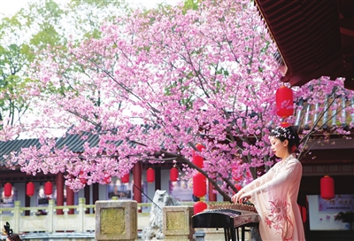 当日,武汉东湖樱花园开园,东湖樱花节同步举办。园内绽放的樱花和文艺表演吸引游客前来赏花观景,放松身心。