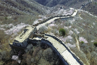 近日,随着气温逐步回升,北京慕田峪长城山花烂漫,春意渐浓。 新华社 发