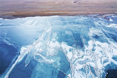 由于近期环湖周边气温升高、风速增大,加速湖面解冻,今年青海湖出现解冻迹象较上年提前17天。新华社 发