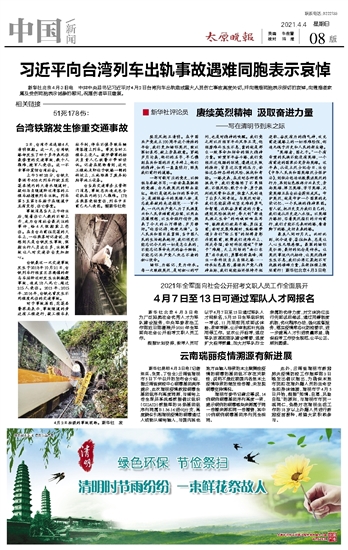 习近平向台湾列车出轨事故遇难同胞表示哀悼
