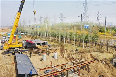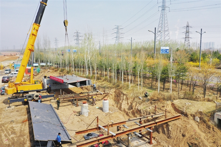 4月6日,新建的杨兴河景观桥建设工地上,工人们开始在桥墩上架设钢梁。该桥位于滨河东路西侧,阳兴大道附近,全长200米,桥宽8.5米。作为滨河自行车专用道工程的一部分,未来,市民可骑行在桥上,一边锻炼身体,一边沿途欣赏汾河景区的美景,感受大自然风光旖旎。