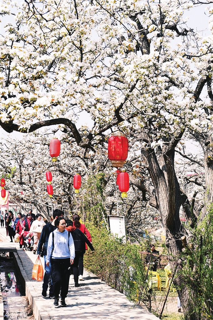 4月5日,游客在皋兰县什川镇古梨园赏花。