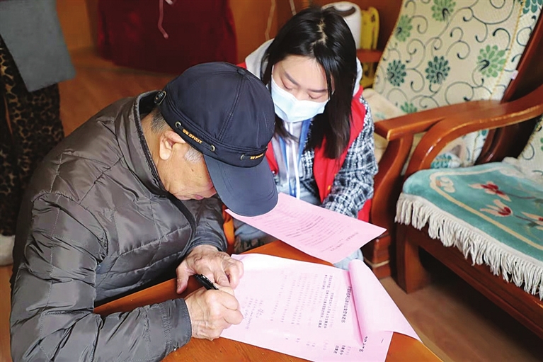 “叔叔、阿姨,如果有陌生人打电话或者发信息,鼓动投资赚钱,千万不要轻信……”4月8日上午,老军营街道劲松社区工作人员入户宣传,请居民填写《自觉远离和防范非法集资承诺书》,宣传防诈知识,提升居民防范意识。
