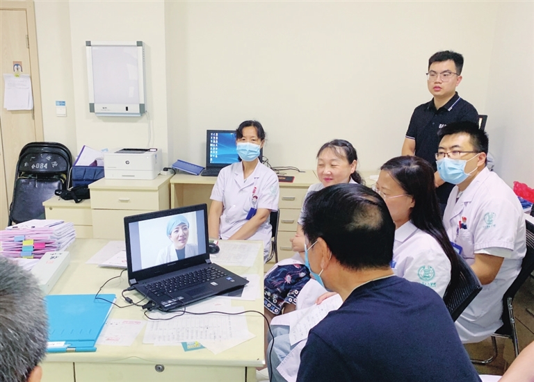 心律失常诊疗中心成立之初,恰逢疫情余波未尽,医院组织了一场又一场的线上会诊,多位院领导“坐镇”现场,北京朝阳医院田颖教授与患者及家属以视频形式进行“面对面”沟通。2020年7月至9月间,通过线上会诊心律失常患者6位,专家、医生、患者“面对面”交流,答疑患者和医生的问题,为患者带来北京一线专家的意见,增强了患者信任感,并为医院其他临床科室普及了电生理知识,一举多得。