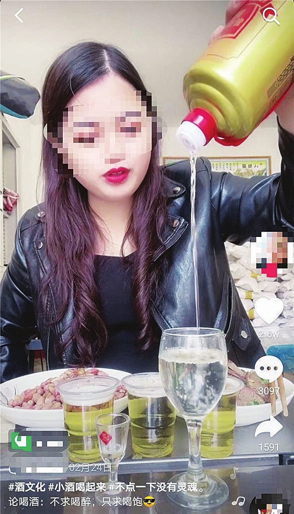 一位西瓜视频主播告诉记者,自己做“喝播”1年多已积累了20万粉丝。“在直播里喝得越猛点击量越高,有一次5口喝完1斤高度白酒,观看量一下子就飙到了20多万。”