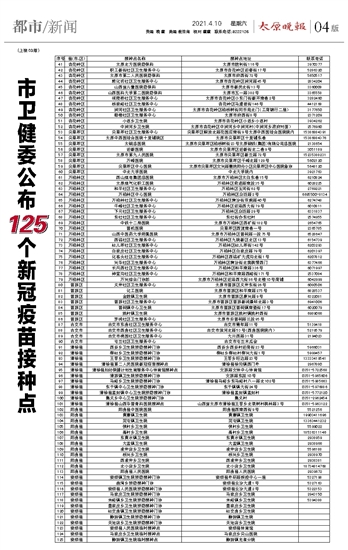市卫健委公布125个新冠疫苗接种点