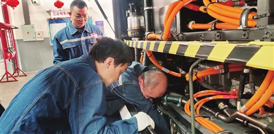 公交修理工赵静静说,在过去的燃油车时代,只要干上一会儿,浑身上下都是油污,如今换成纯电动公交车后,油污明显减少,工作环境干净多了。纯电动公交车对电路控制系统要求极高,高压仓不能积尘,要对电机勤检查勤除污。线路也非常重要,日常保养时要仔细检查每一条线路,对每一个线卡子都要重复固定,避免发生线松、脱落等现象,影响公交车正常运行。