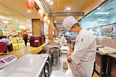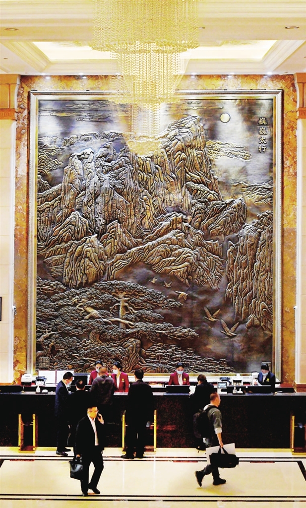 从外墙的红色中式木隔断饰面、门头上的红灯笼,到餐厅内色彩斑斓的各式花灯、古色古香的酒旗,“晋味儿”餐厅处处都有浓郁的传统气息。这里荟萃了山西美食精华。人们可以品尝到山西过油肉,品味到酱烧汾河鱼、铜锅小烩菜等传统招牌菜,欣赏到明档厨房的面食表演,还可以在苔蘑狮子头、雁北扣香肉、运城鱿鱼汤、晋南臊子面中感受山西各地风味。这里充溢着山西民俗意韵。门口有捏面塑的艺人,没有疫情的时候,舞台上有曲艺表演,让人在色香味的享受中,顺便来一趟山西民俗之旅。必须说到的是“晋味儿”早餐。这里可以说是全市早餐最全集结地。家常的烙饼、稀饭,传统的油条、老豆腐,晋西北的油酥饼、羊肉汤,广式的虾饺、奶黄包,太原人喜欢的头脑等,这里一应俱全。价格则与市面上的普通小店大体相当。开业几年来,每天早上6:30到9:30,整个餐厅座无虚席。定位平价消费,服务社会大众,传承地方特色,这是酒店的经营策略,也是对社会责任的一份承担。
