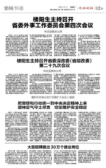 楼阳生主持召开省委深改委(省综改委) 第二十九次会议