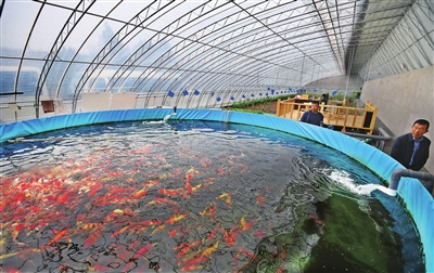 4月11日,在晋源区三家村鱼菜综合养殖基地大棚里,鲜活的鲤鱼与翠绿的蔬菜和谐共生,形成了一套生态养殖新模式。据介绍,该区与省水产科学研究所合作,通过现代生物技术形成渔业循环养殖与果蔬种植生态互利关系,进一步提高农业生产工业化。 牛晨阳 摄