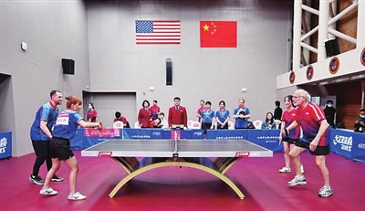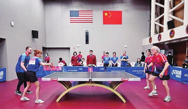 1971年4月10日,美国乒乓球代表团踏上中国土地,成为新中国成立后首批正式到访的美国客人。2021年4月10日,上海中国乒乓球博物馆冠军堂,26名中美乒乓球业余选手结伴组队,正在进行友谊赛。