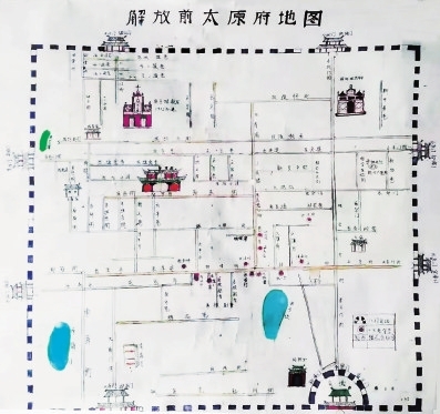 后来,有一位采访过张志勇老先生的记者对他说,市政协有一位老领导知道了他的事迹后,对他很重视,问他能不能画一幅太原市旧城的历史地图。老人听到这样的话很受激励,还真就动起手来了。他凭着小时候跟着母亲卖鸡蛋和上班后在太原城逛街时的记忆,又手绘了一张《解放前太原府地图》,希望能为太原市的文史工作发挥一些作用。