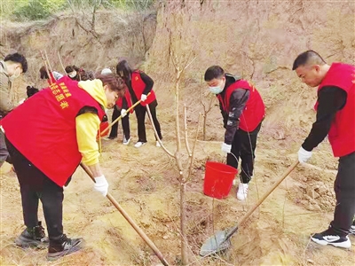4月12日,迎泽街道并州路一社区组织党员、党员志愿者服务队开展植树活动,以实际行动为锦绣太原建设贡献自己的力量。