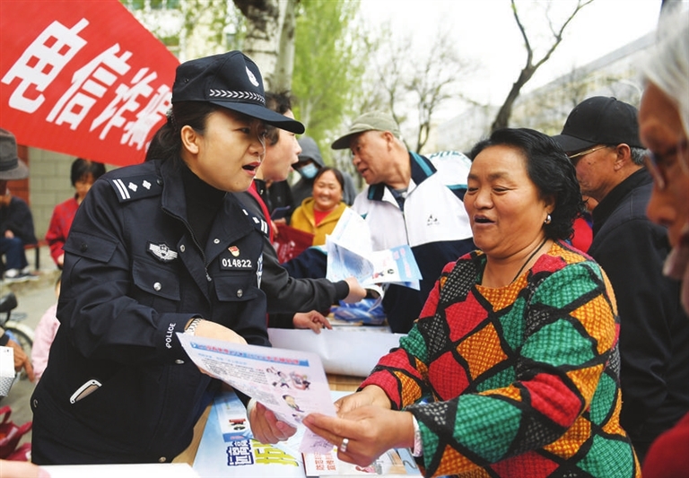 4月13日,老军营派出所民警和桃南一社区工作人员,深入多个公共场所开展防范电信诈骗宣传活动,有效提高群众防骗、识骗能力,维护群众的财产安全。