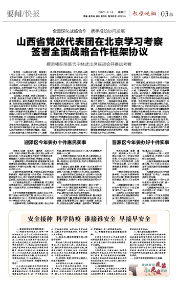 山西省党政代表团在北京学习考察 签署全面战略合作框架协议