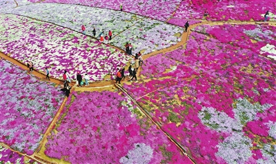 近日,河北省迁西县旧城乡北孙家峪村大黑汀水库东岸500多亩芝樱花竞相绽放,吸引众多游客前来赏花。 新华社 发