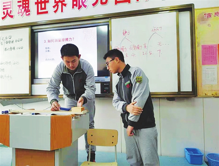 下课后,“小老师”董思成还意犹未尽,“我特别喜欢这样的课堂。在给同学讲解的过程中,我自己的思路就更清晰了。自己的知识盲点也解决了。”