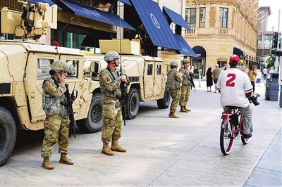 明尼苏达州国民警卫队说,当天凌晨4时19分,有人从一辆浅色运动型多功能汽车朝正在街区巡逻的安保小组开了数枪。