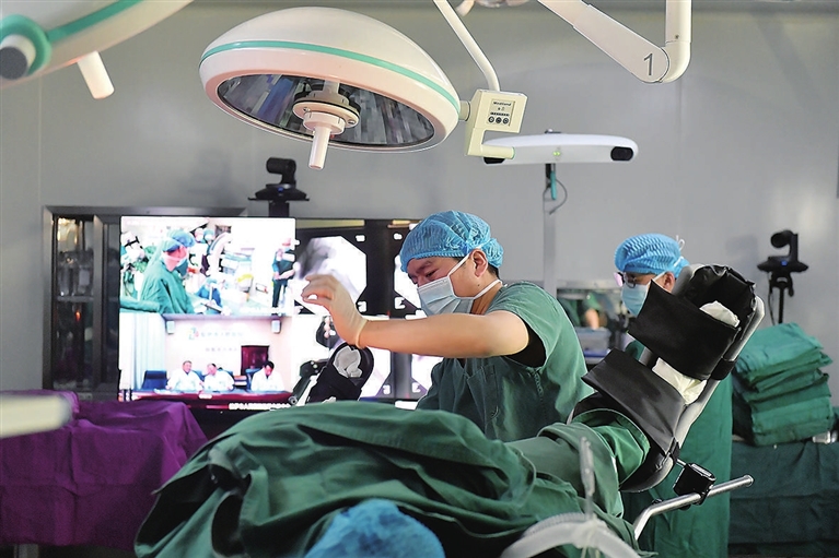 4月19日,北京积水潭医院机器人远程手术中心与拉萨市人民医院手术室通过5G通信技术实时连线,京藏合作成功实施一例“5G+机器人”远程骨科手术。手术中,拉萨市人民医院采集患者术中二维影像后,通过骨科手术机器人远程手术服务平台传输到北京积水潭医院,积水潭医院专家完成手术设计,远程指导拉萨市人民医院骨科医生,对患者实施了闭合复位螺钉内固定手术。北京援藏医生、拉萨市人民医院院长任轶表示,此次远程手术的顺利实施,将为开展更多复杂创伤、脊柱手术奠定了基础。 新华社 发